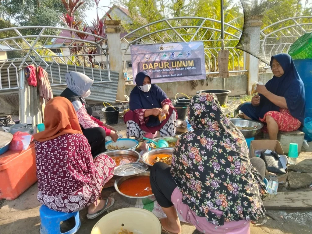 Di hari berikutnya, aksi berlanjut dengan pembukaan Dapur Umum di Dusun Lhok Nga, Kecamatan Kutablang, Kabupaten Bireuen—salah satu wilayah yang terdampak cukup parah akibat banjir bandang.